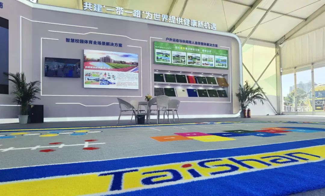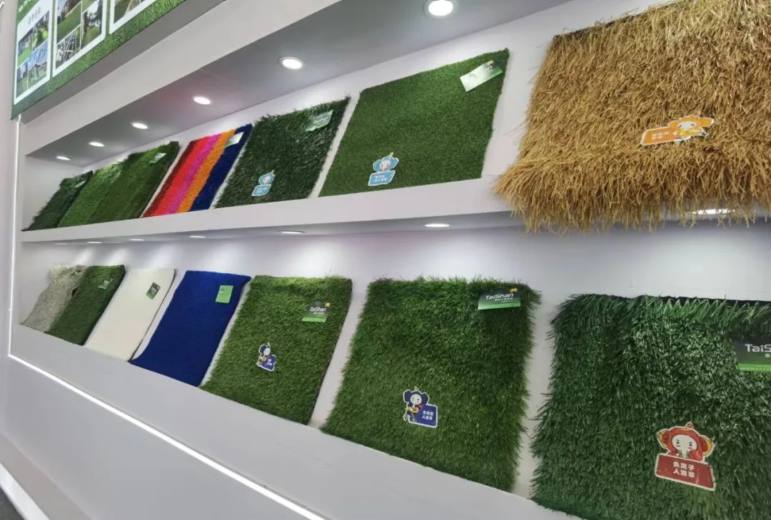 谈球吧携户外运动与休闲人造草整体解决方案亮相会场。作为国内首家通过足联、曲联双认证的企业可根据不同用户的户外运动需求,生产多种类型的户外运动草坪。